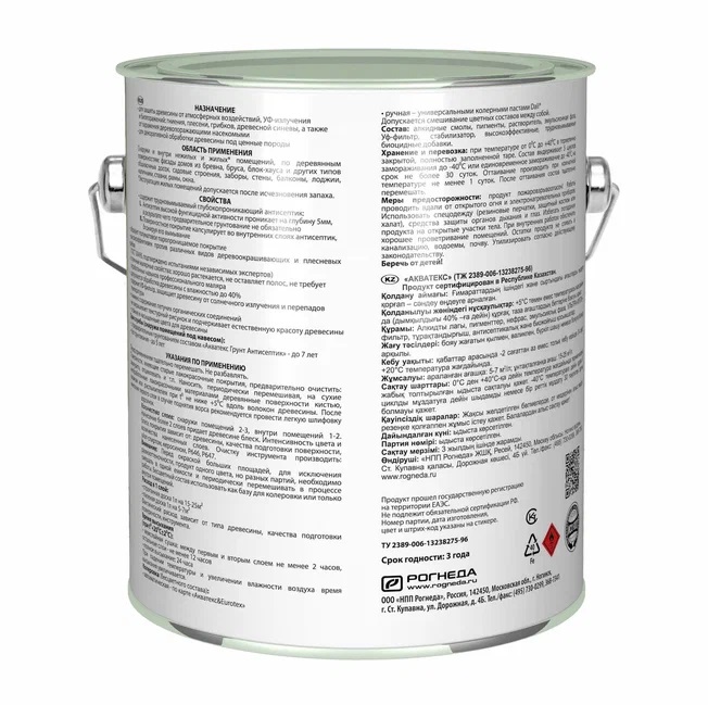 Состав алкидные смолы, нефрас, эмульсионная фаза, высокоэффективные трудновымываемые биоцидные добавки, светостойкие пигменты, УФ-фильтр UVA-диапазона, стабилизатор