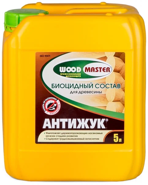 Состав «Антижук»® наносят при положительной температуре воздуха и основания на сухие, чистые, свободные от лакокрасочных покрытий поверхности кистью, валиком, садовым распылителем, краскопультом или окунанием.
