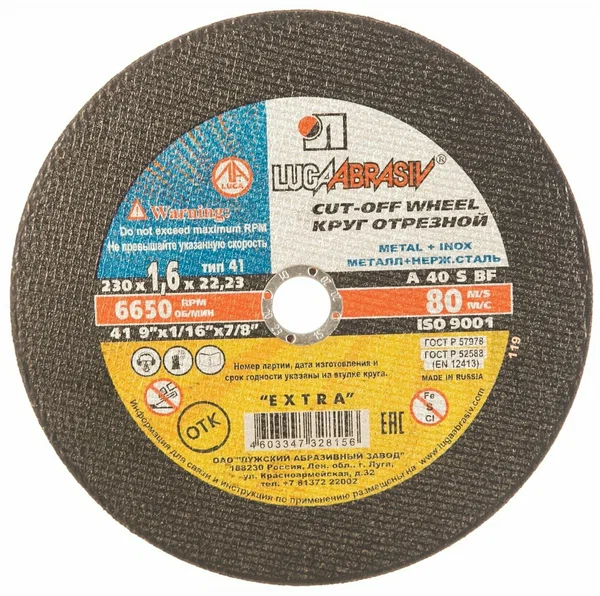 Круг отрезной по металлу ЛУГА 230х1,6х22,2мм