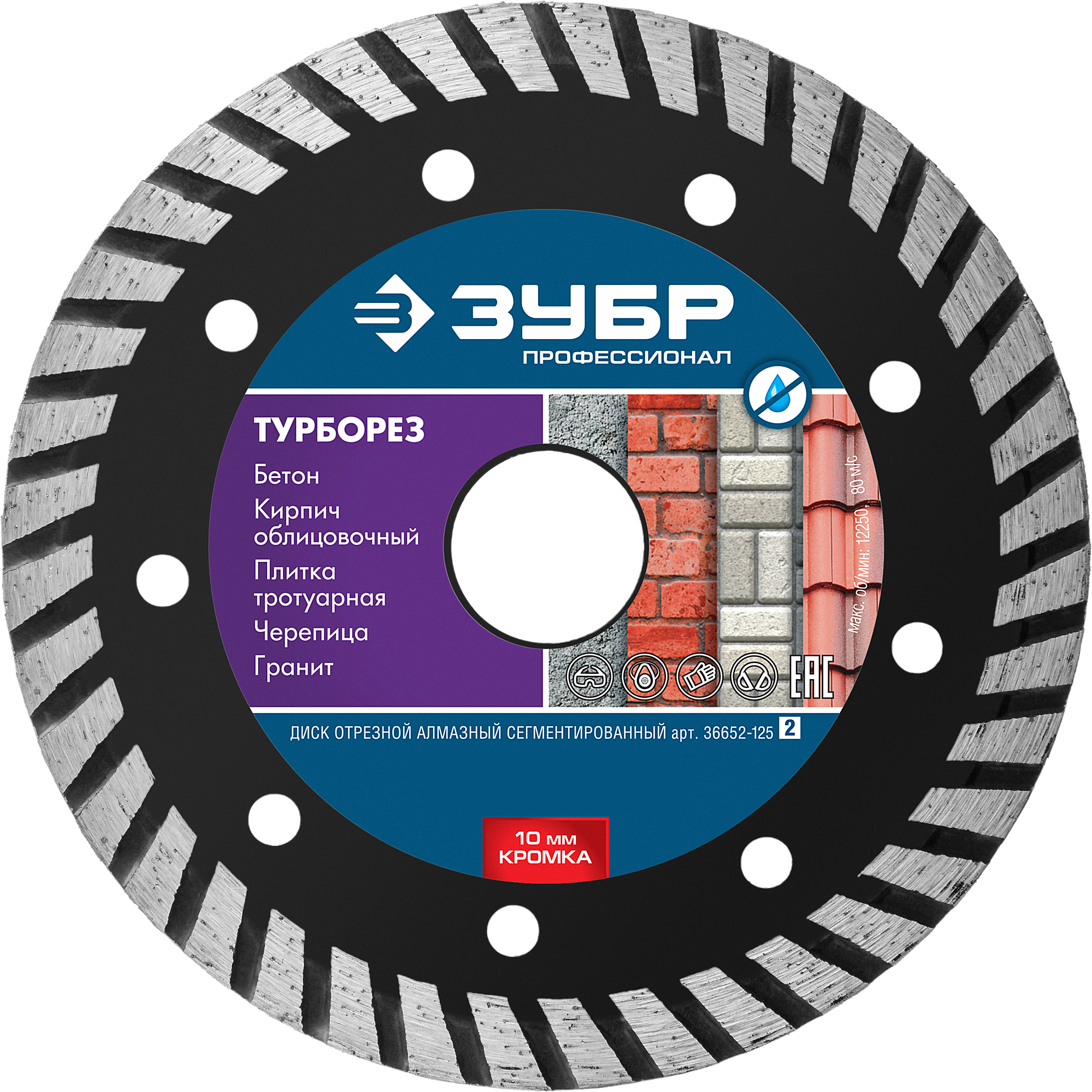 - Диск алмазный отрезной сегмент ЗУБР Проф ТУРБОРЕЗ 125мм по бетону кирпичу граниту