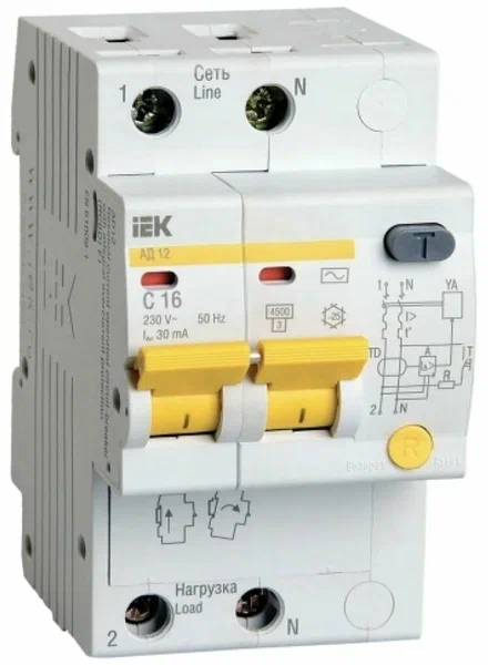 Выключатель автоматический диффер 2Р 16A IEK