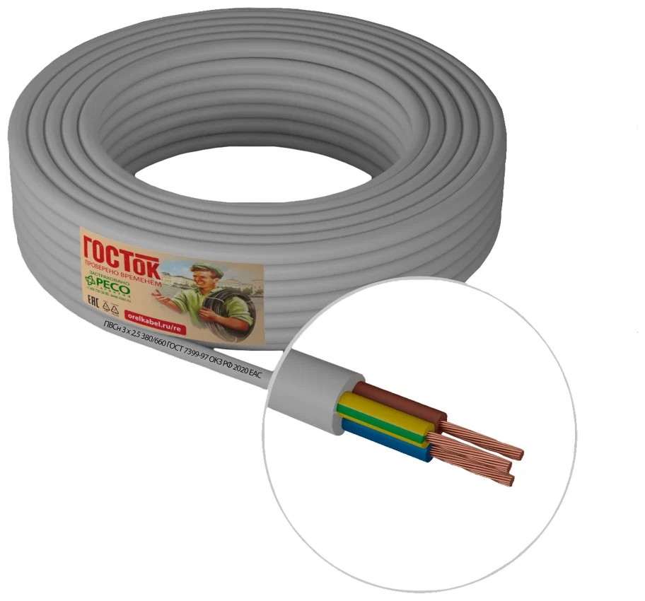 - Провод ПВСн 3Х2.5 бел 10м ГОСТок