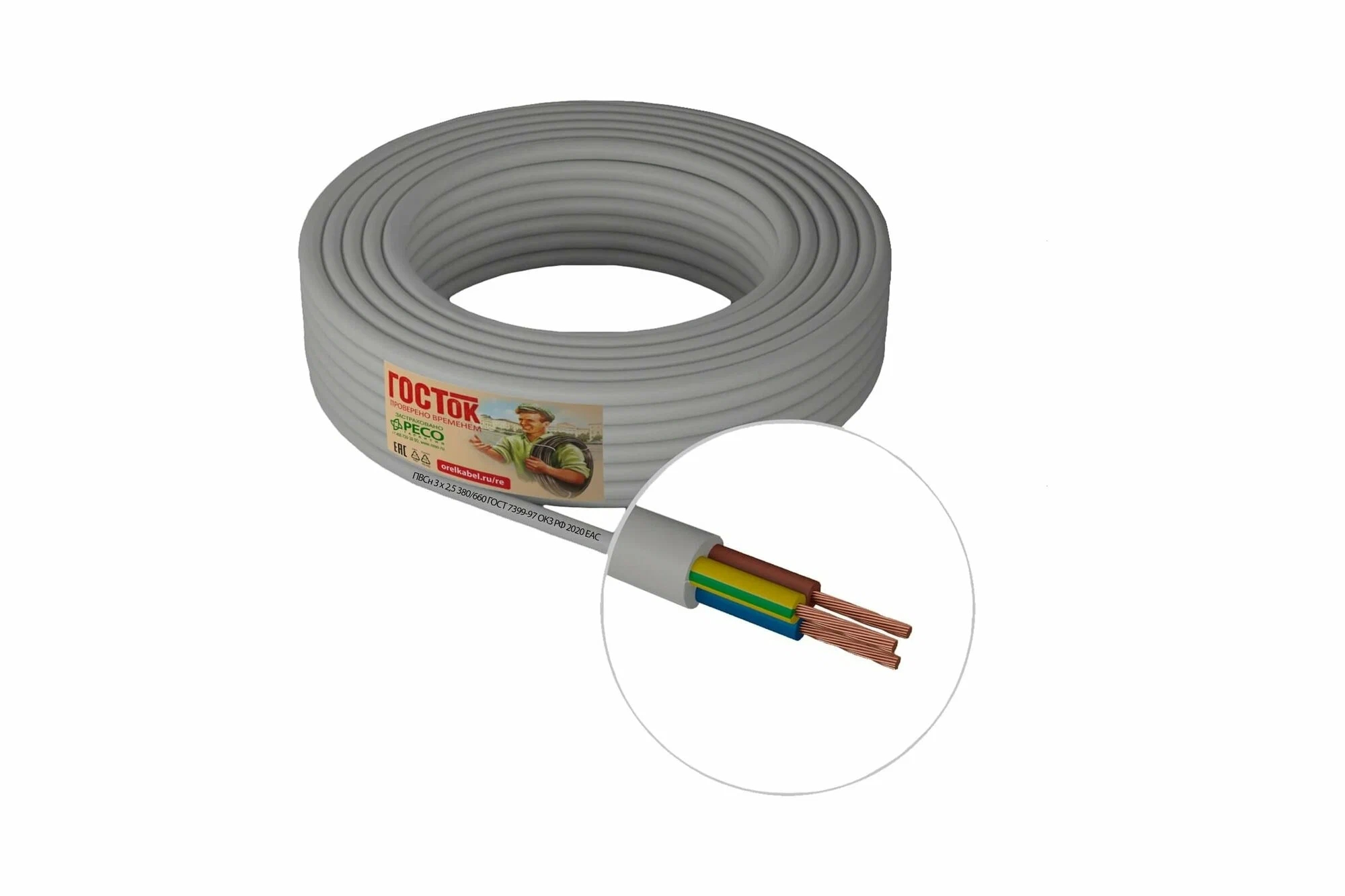 Провод ПВСн 3Х2.5 бел 20м ГОСТок