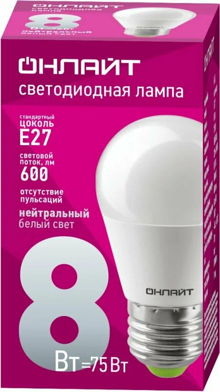 Лампа LED 8вт Е27 6,5к днев мат шар ОНЛАЙТ