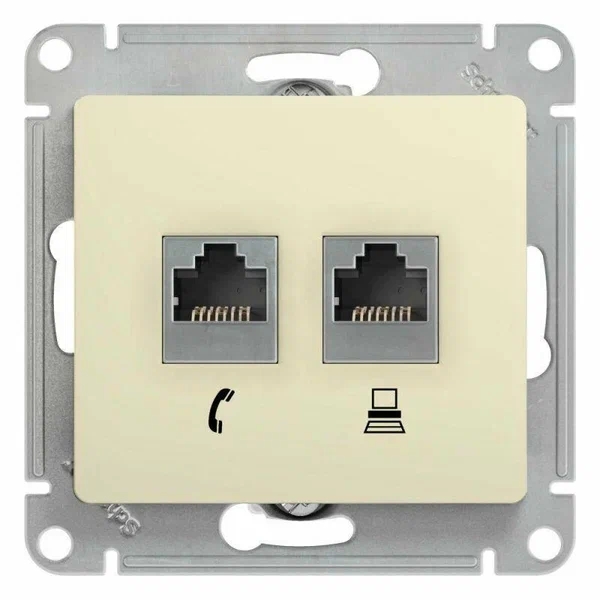 Розетка телефон/компьютер бежевый GSL000285 GLOSSA