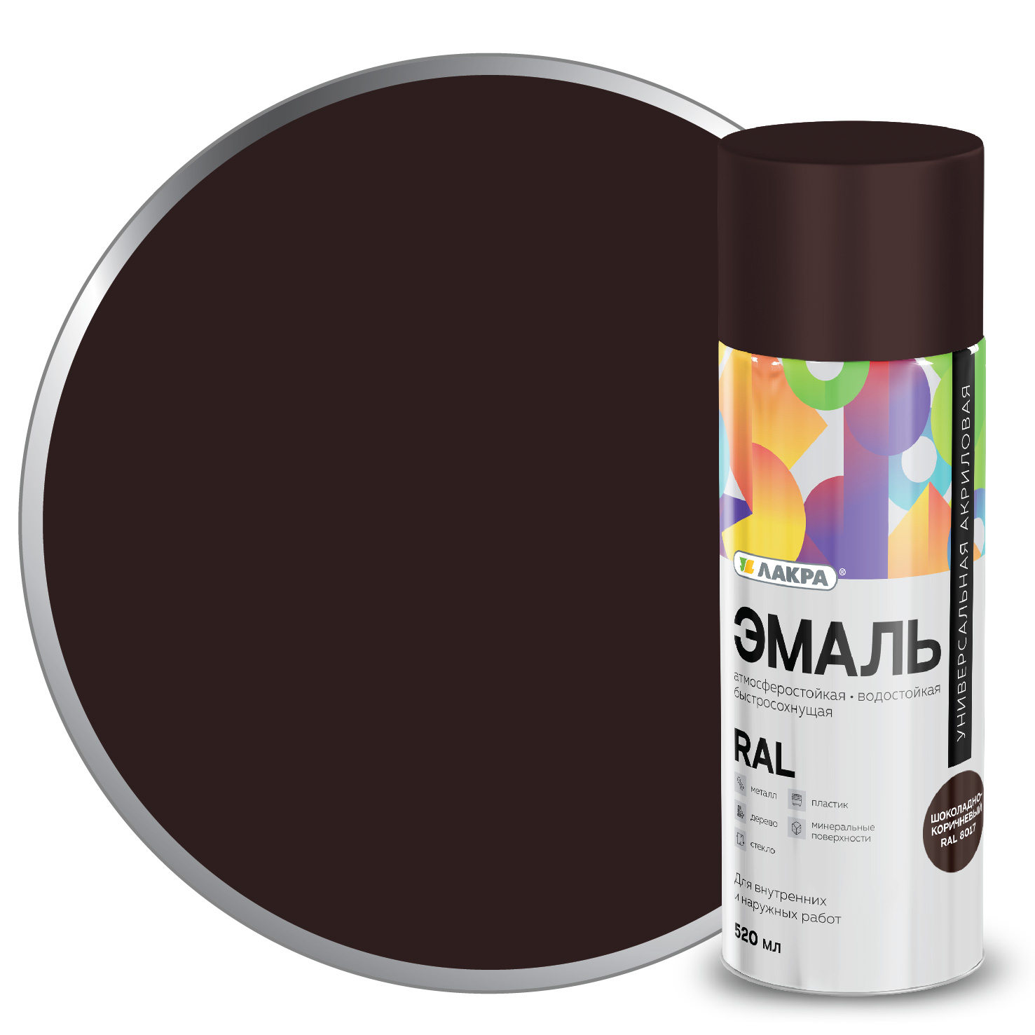 - Эмаль аэрозольная ЛАКРА RAL акриловая RAL8017 шоколадно-коричневая 520мл