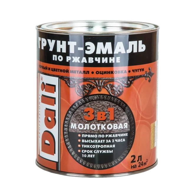 Грунт-эмаль по ржавчине Dali с молотковым эффектом Шоколадная 2 л