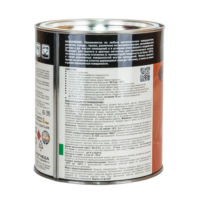При необходимости, допускается разбавление эмали сольвентом или ксилолом, но не более 10% от общей массы состава