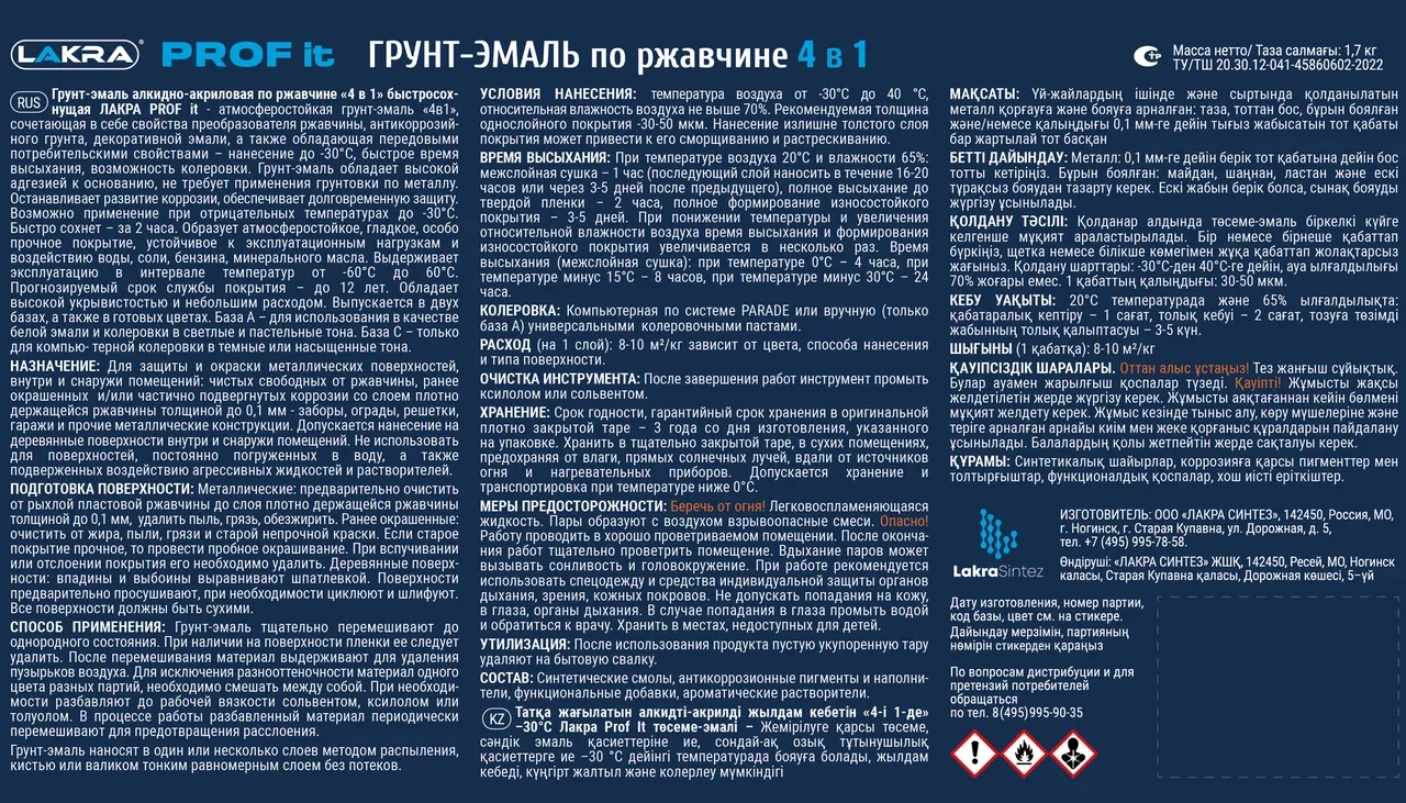 Атмосферостойкая гладкая грунт-эмаль «4 в 1», сочетающая в себе свойства преобразователя ржавчины, антикоррозионного грунта, декоративной эмали, а также обладающая передовыми потребительскими свойствами – нанесение до -30°С, быстрое время высыхания и возможность колеровки.