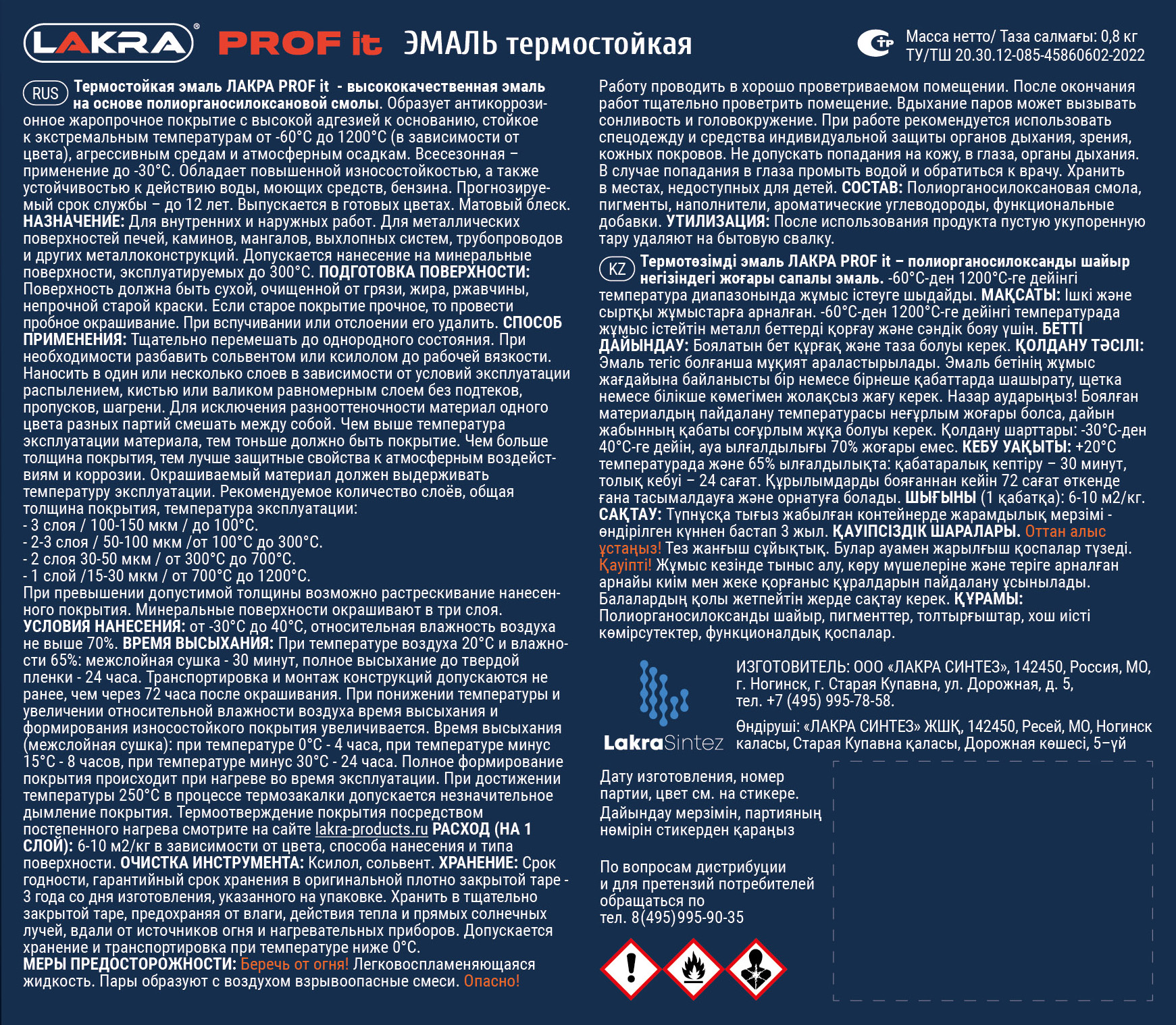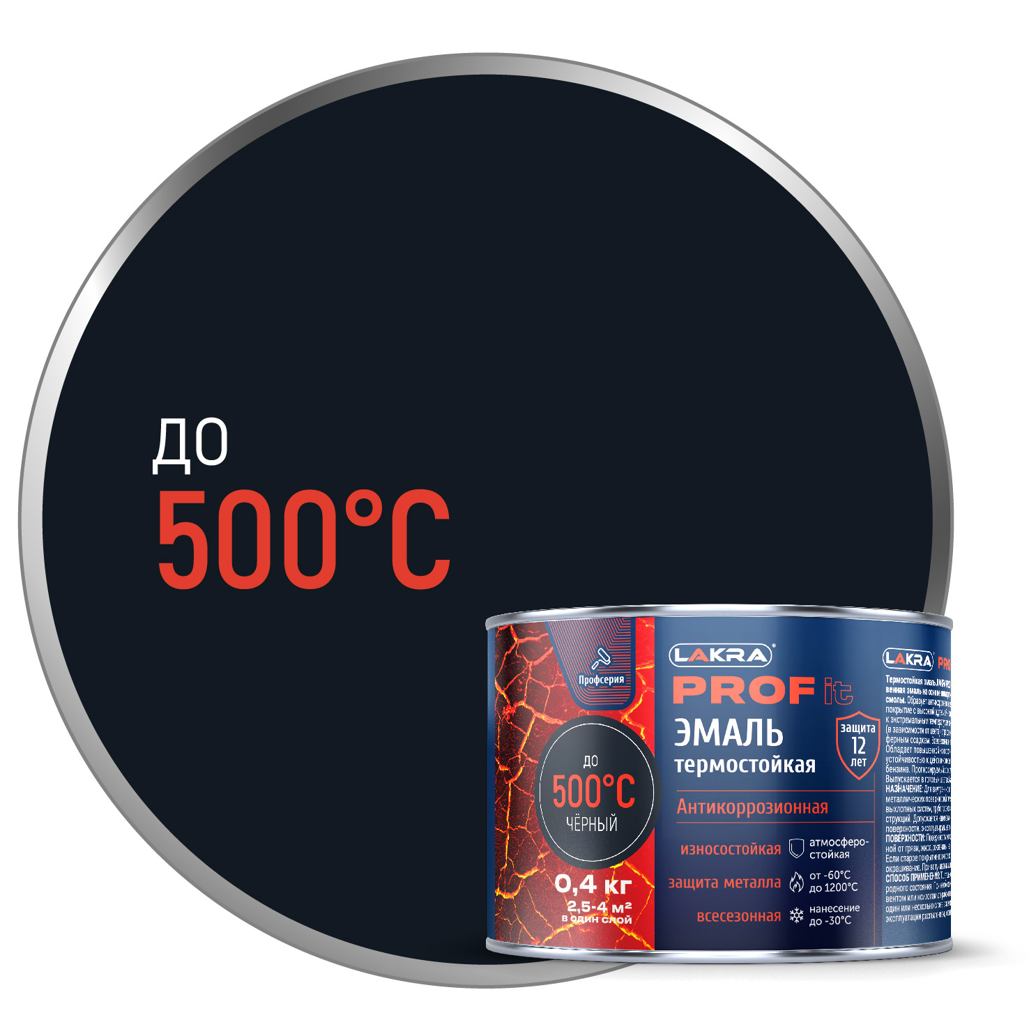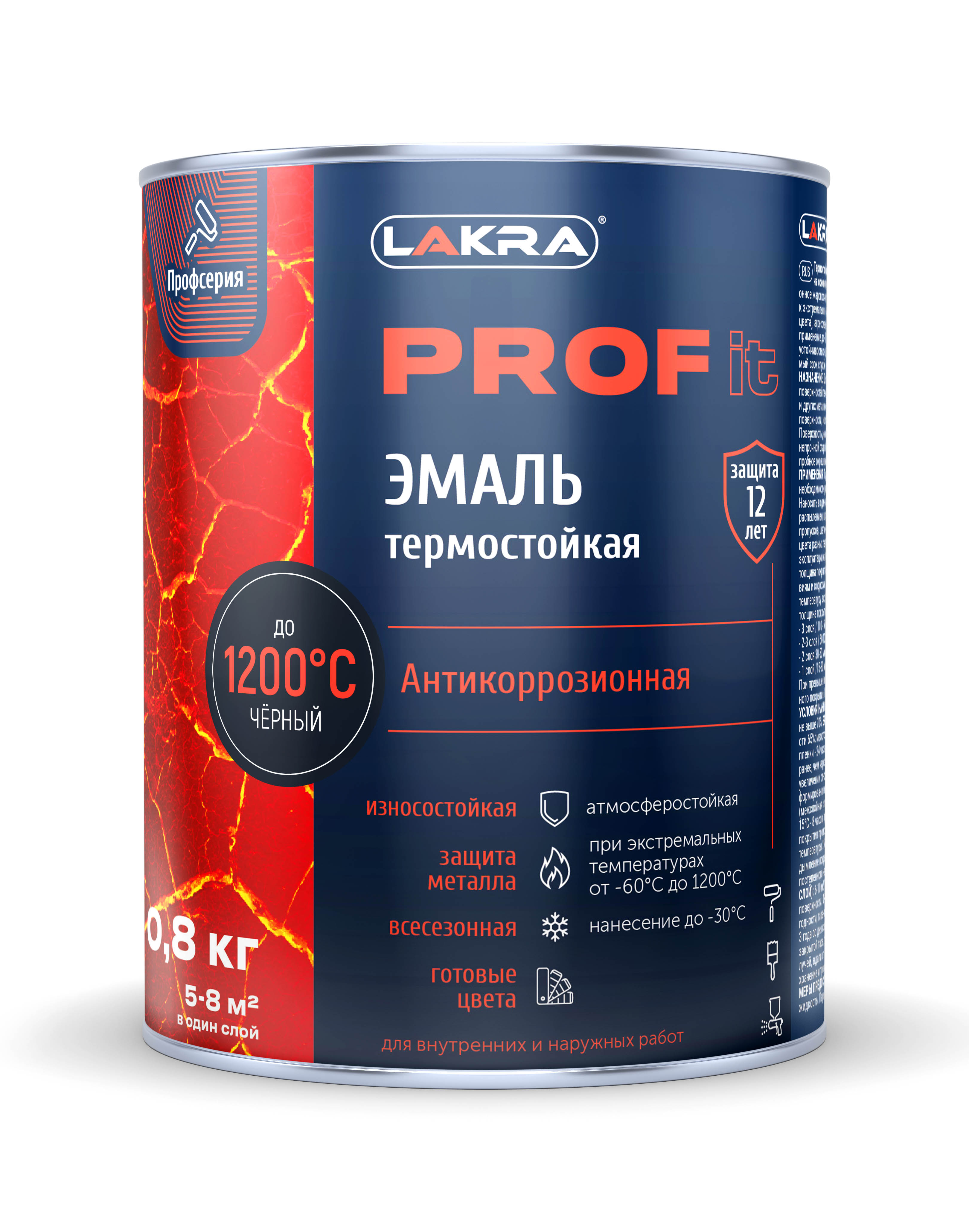 Эмаль Термостойкая КО Лакра PROF IT антикоррозионная до1200С Черная 0,8кг