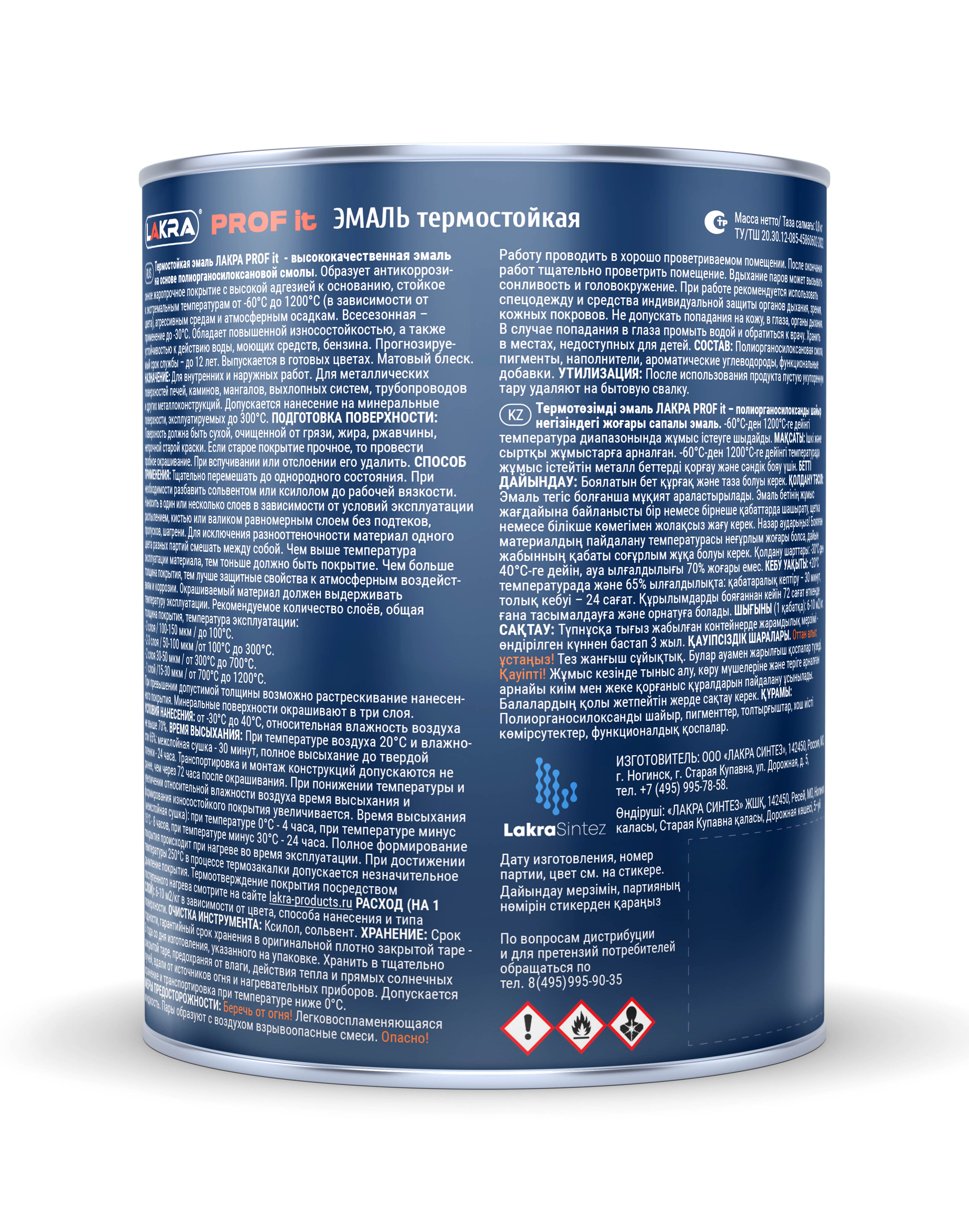 Эмаль Термостойкая КО Лакра PROF IT антикоррозионная до500С Черная 0,8кг