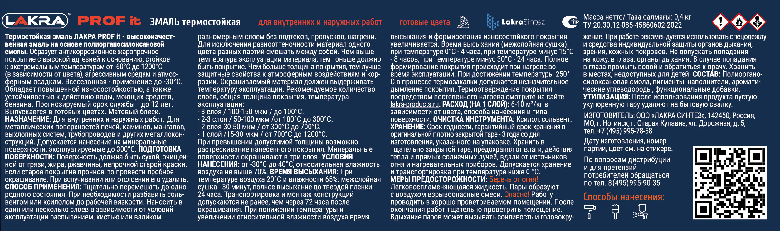 Для профессионального и бытового применения для защиты и декоративной окраски металлических поверхностей, эксплуатируемых при температуре от -60 до 1200°С - печей, каминов, мангалов, выхлопных систем, деталей двигателей, нагревательных котлов, газопроводов, трубопроводов и других металлоконструкций, подверженных нагреванию. Допускается нанесение на минеральные поверхности (бетон, кирпич, железобетон и др), эксплуатируемых при температурах до 300°С.