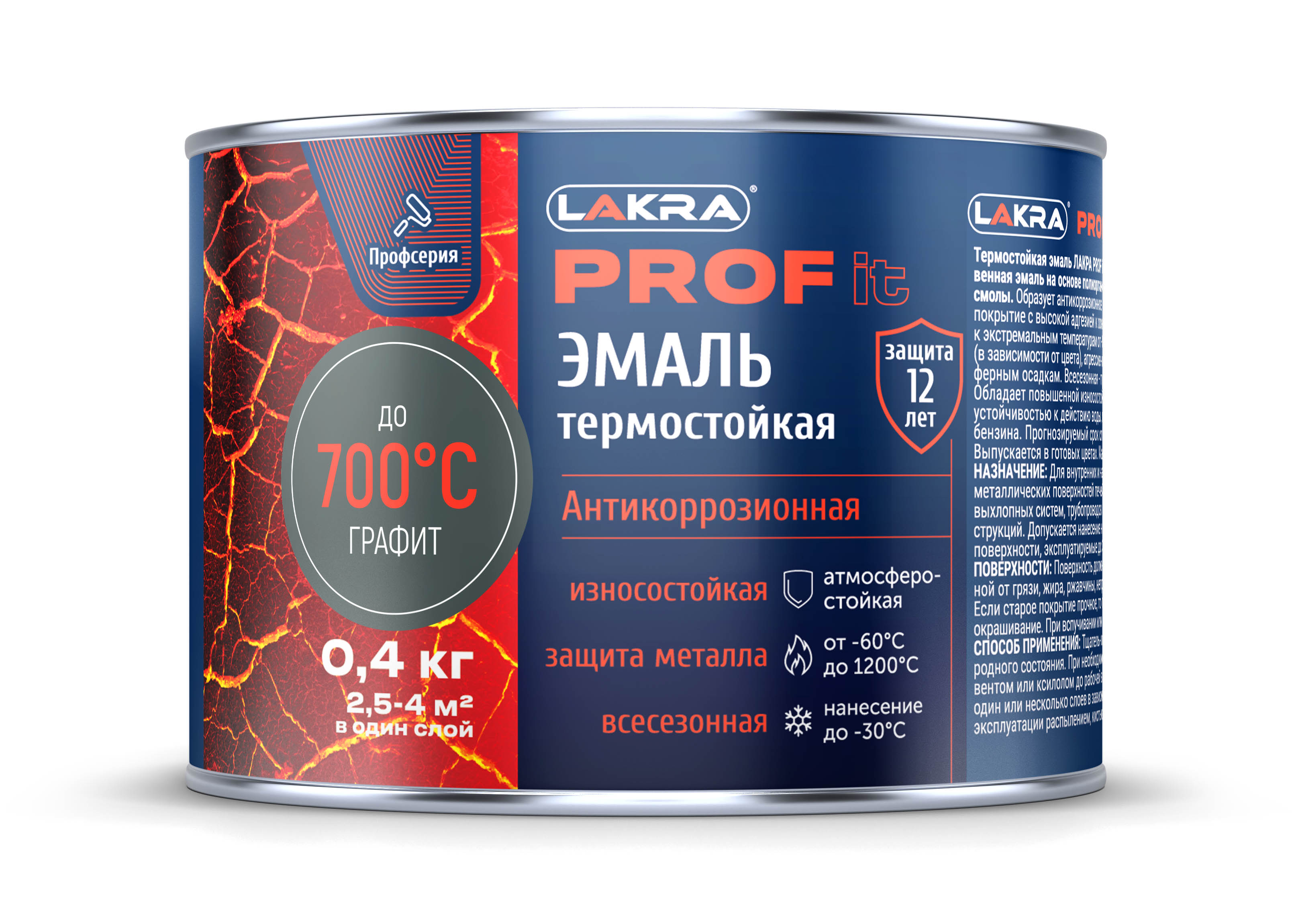 Эмаль Термостойкая КО Лакра PROF IT антикоррозионная до700С Графит 0,4кг