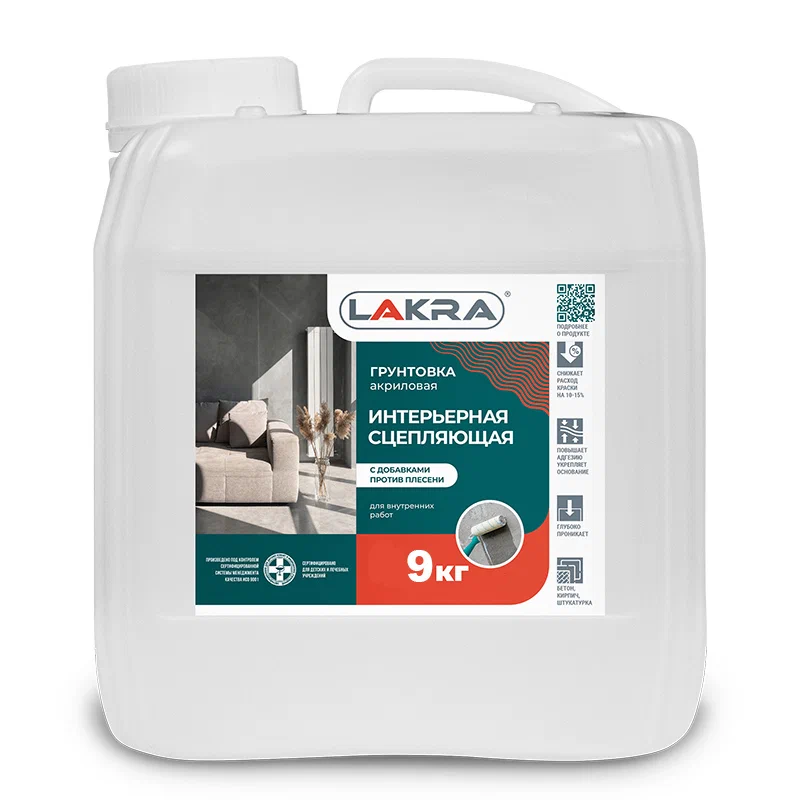 Грунтовка акриловая ЛАКРА интерьерная сцепляющая против плесени 9кг