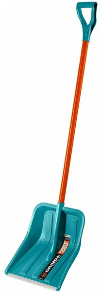 Лопата для снега PLAIBER 475х400мм, поликарбонат оранжевая стальной черенок 111см, V-обр ручка