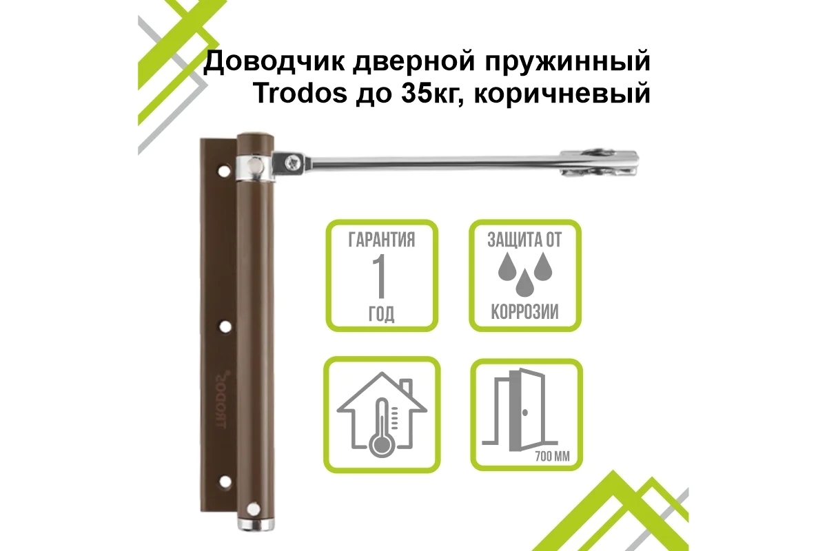 - Доводчик дверной пружинный Trodos до 35кг, коричневый