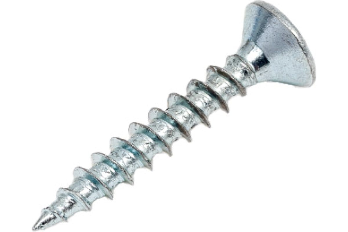 Характеристики: Изготовлен из стали, поверхность оцинкована и пассивирована. Наконечник острый, головка потайная с крестообразным шлицем Pozodrive. Шаг резьбы крупный.