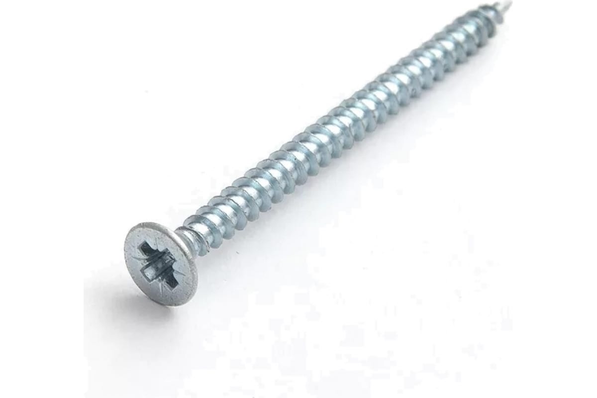 Характеристики: Изготовлен из стали, поверхность оцинкована и пассивирована. Наконечник острый, головка потайная с крестообразным шлицем Pozodrive. Шаг резьбы крупный.