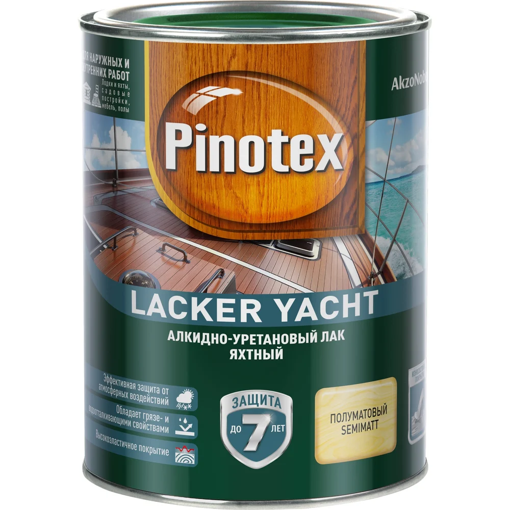 Яхтный лак Pinotex Lacker Yacht (также его называют палубный или корабельный лак) подходит для обработки деталей лодок, яхт выше ватерлинии, защищая древесину от воздействия воды, в т.ч. соленой (надежная защита от сырости).