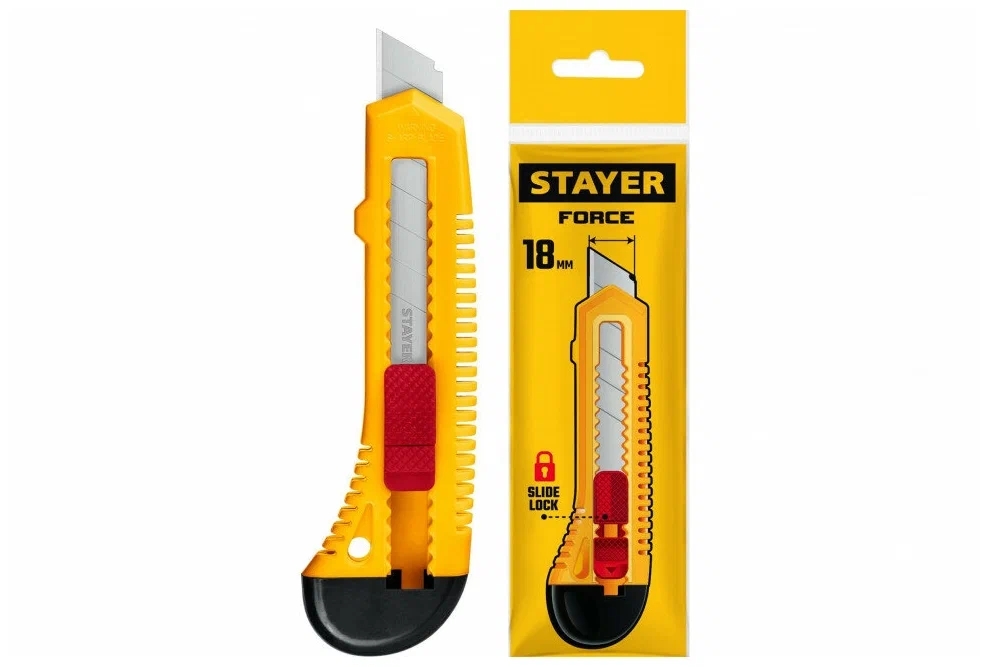 Нож STAYER Standart с выдвижным сегментированным лезвием 18мм
