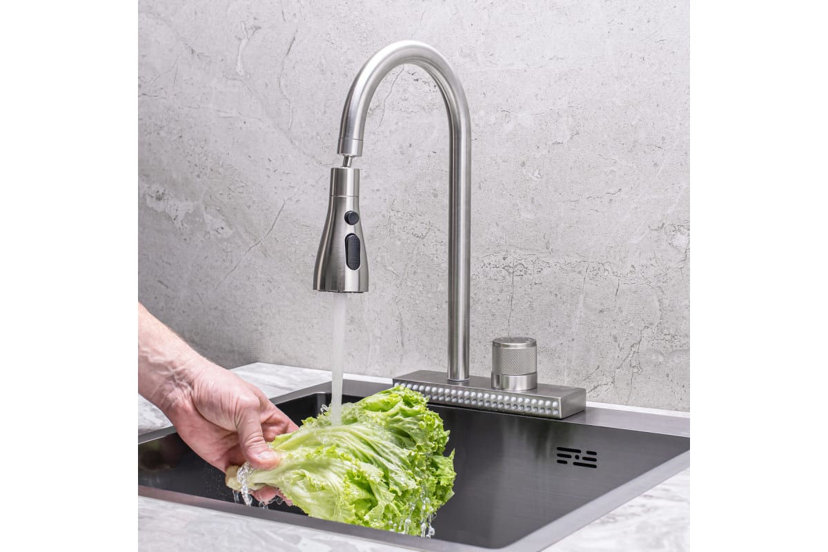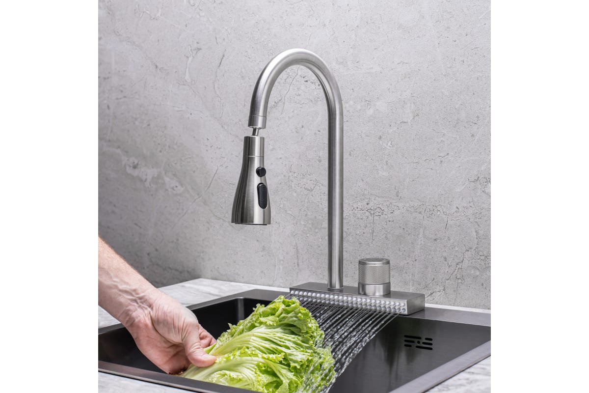 - Смеситель для кухни РМС SUS130-017F-2 водопад, смеситель на кухню, кухонный смеситель, летящий дождь