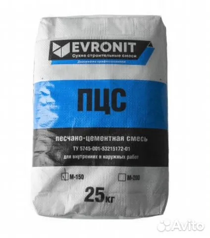 - Цементно-песчаная смесь 25кг М-150 Евронит