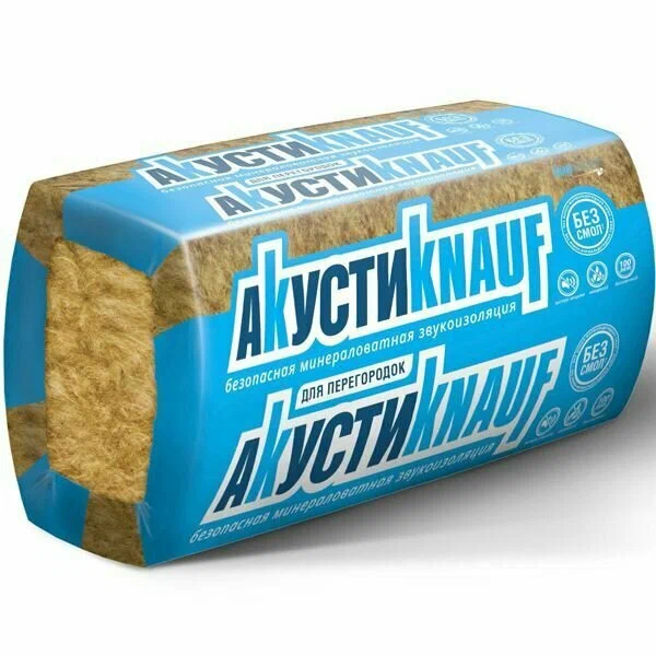 КНАУФ Акустик Плита для перегородок звукоизоляция 1230х610х50мм (12м2=0,6м3)