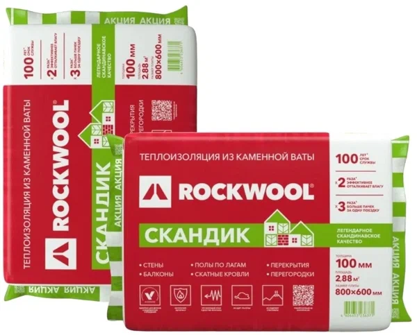 ROCKWOOL Лайт Баттс Скандик 800*600*100 2,88м2/0,288м3 6шт/уп