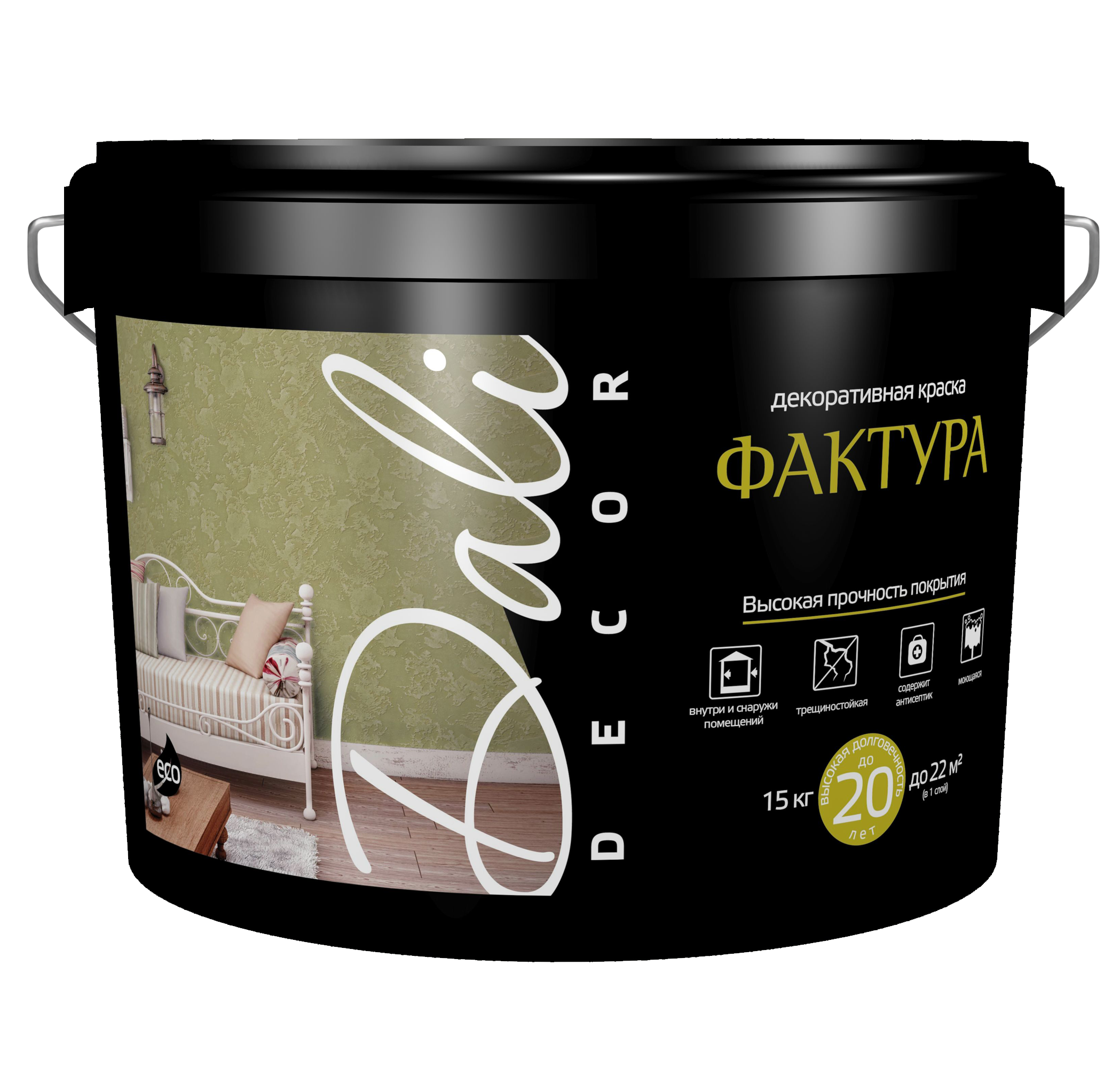 Для получения некоторых декоративных эффектов, в качестве базового слоя требуется нанести краску акриловую Dali-Decor™ Base. Цвет базового слоя рекомендуется подбирать под цвет будущего финишного покрытия.
