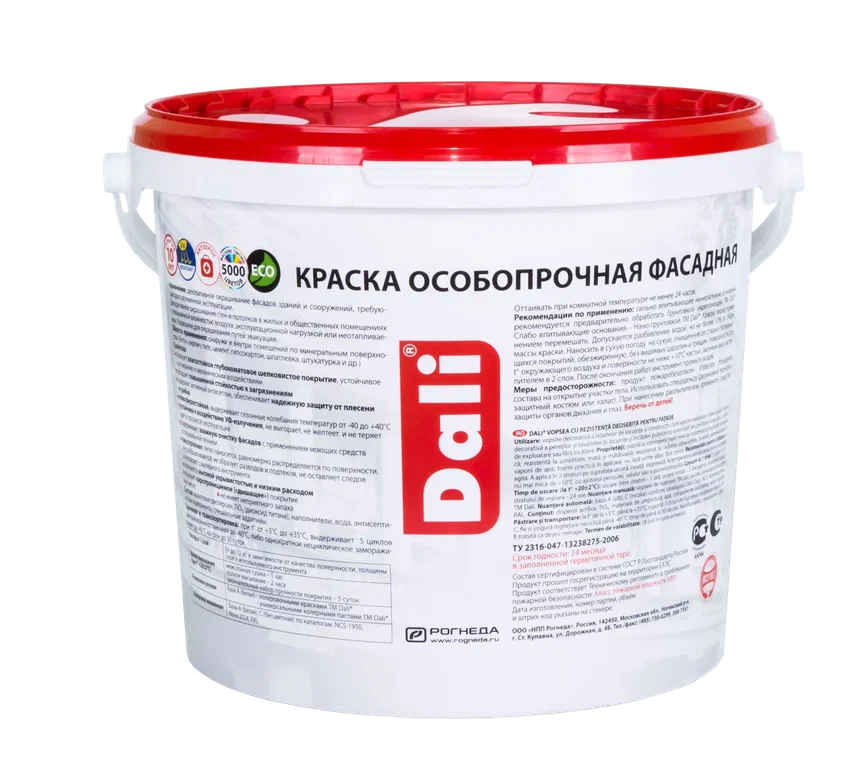 Акриловые дисперсии, диоксид титана, наполнители, вода, антисептические компоненты, специальные аддитивы