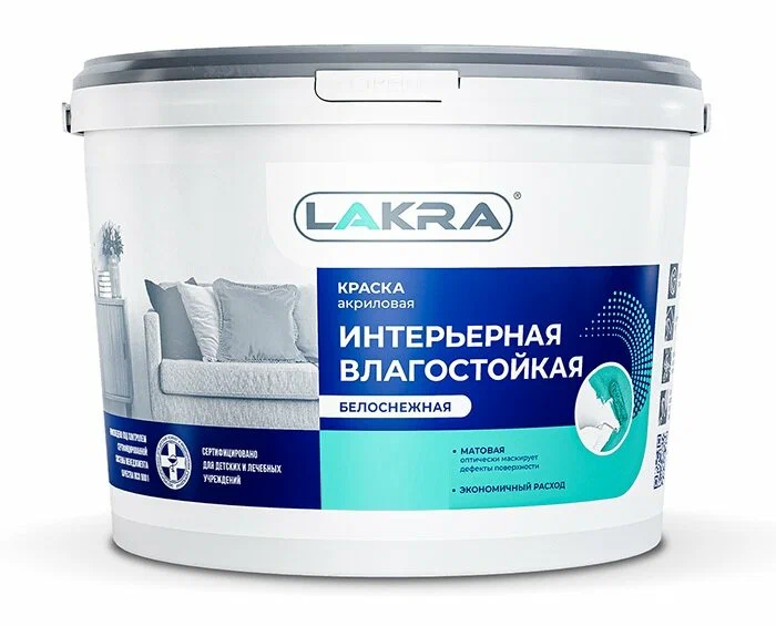 Краска ЛАКРА акриловая интерьерная влагостойкая белоснежная 14кг