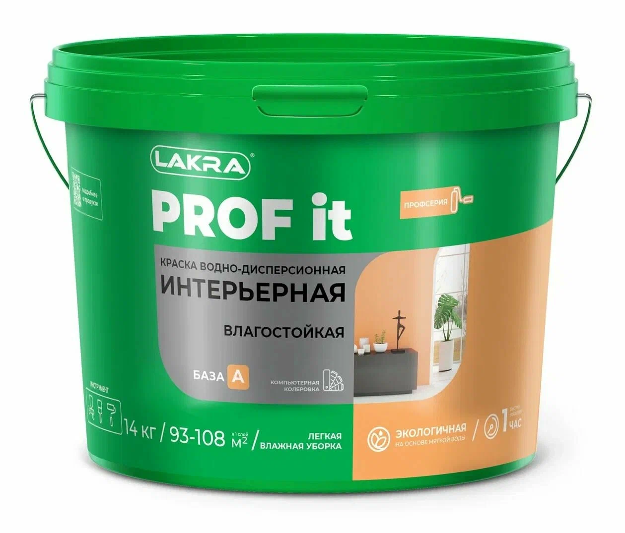 - Краска Лакра акриловая интерьерная влагостойкая PROF IT база А 14 кг