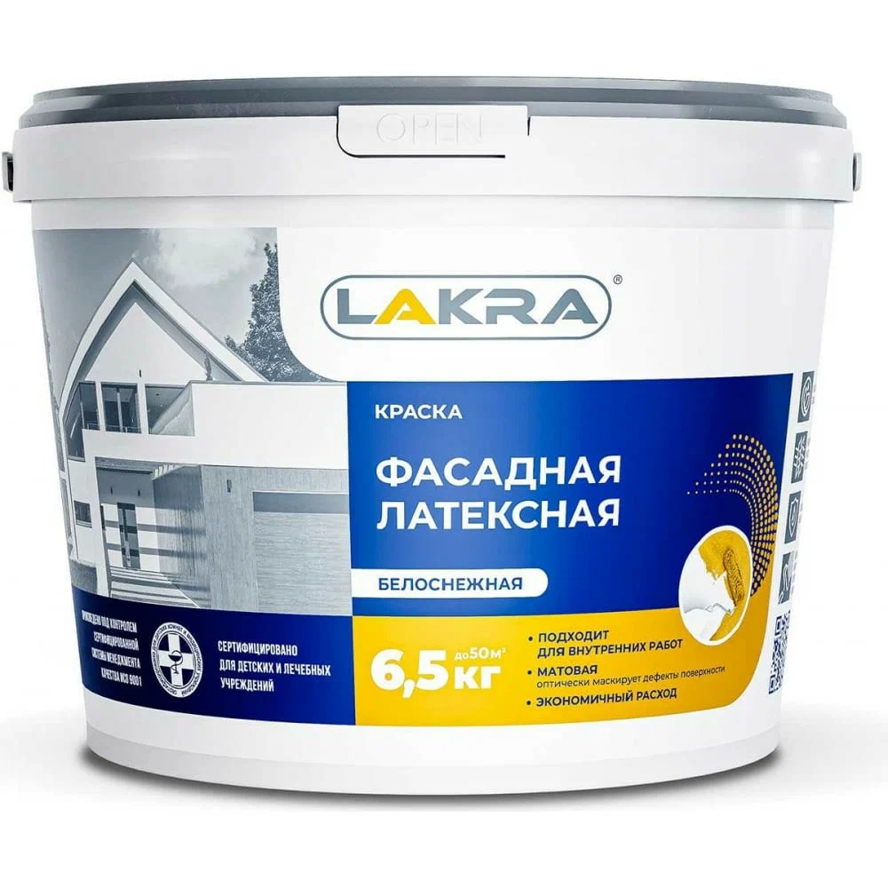 Краска ЛАКРА фасадная латексная белая 6,5кг
