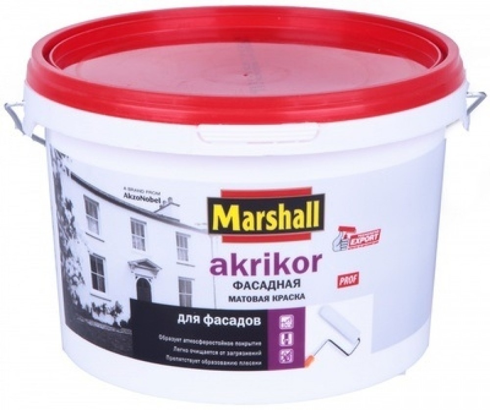 - Краска Marshall Akrikor Фасадная акриловая матовая BW белая 4,5л
