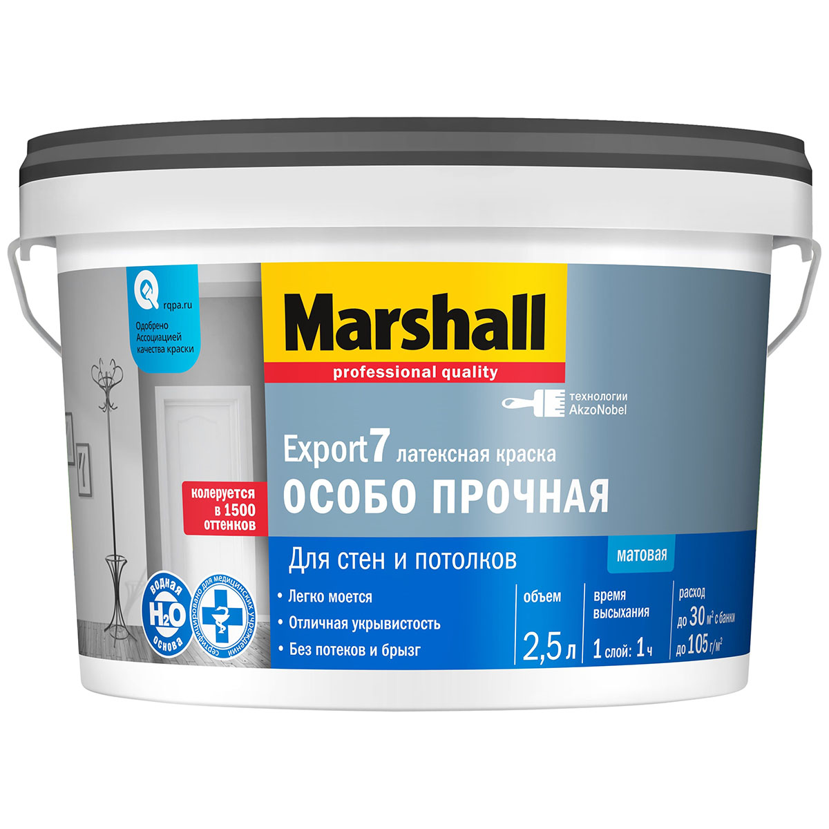 Краска Marshall Export-7 латексная Особо прочная BC 2,5л (Бесцветная база)