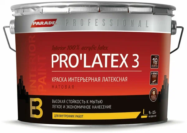 Краска Parade PROLATEX E3 латексная интерьерная моющаяся 9л База С
