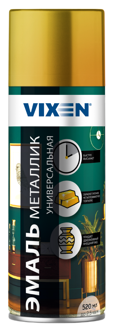 Эмаль аэрозольная VIXEN акриловая универсальная металлик "Золото" 520мл, VX-19200