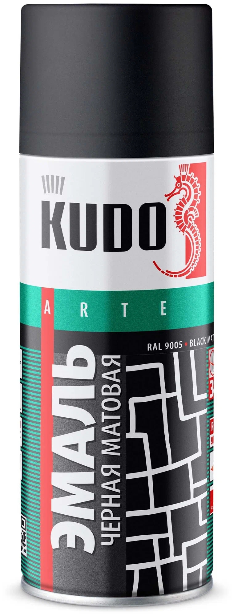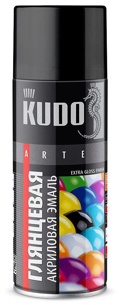 Эмаль KUDO акриловая RAL9005 черная высокоглянцевая аэрозольная быстросохнущая универсальная 520мл