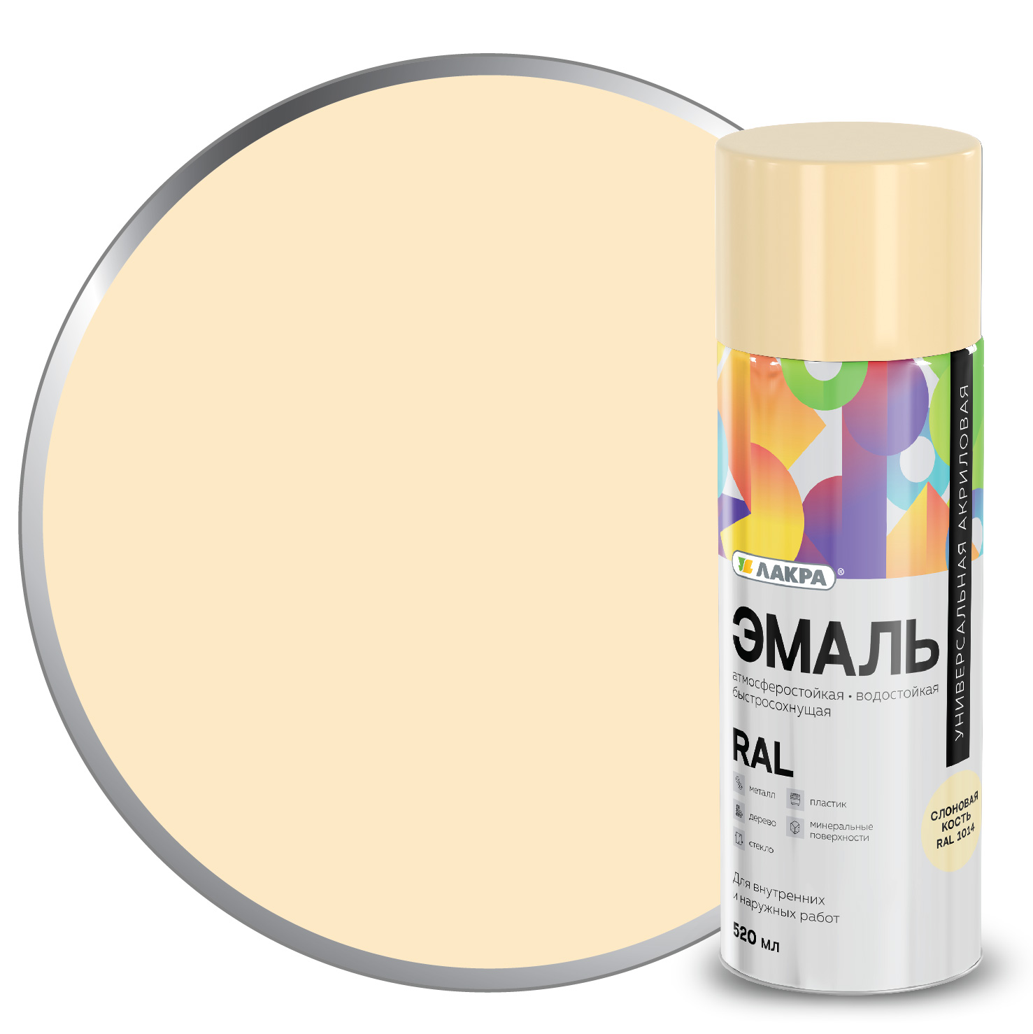Эмаль аэрозольная ЛАКРА RAL акриловая RAL1014 слоновая кость 520мл