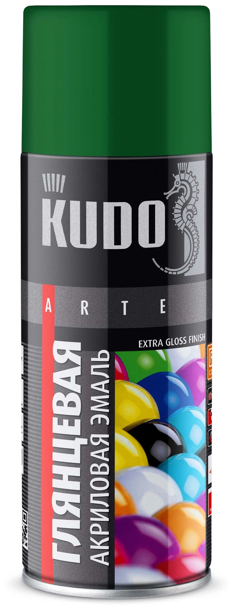 Эмаль KUDO акриловая RAL6029 зеленая высокоглянцевая аэрозольная быстросохнущая универсальная 520мл