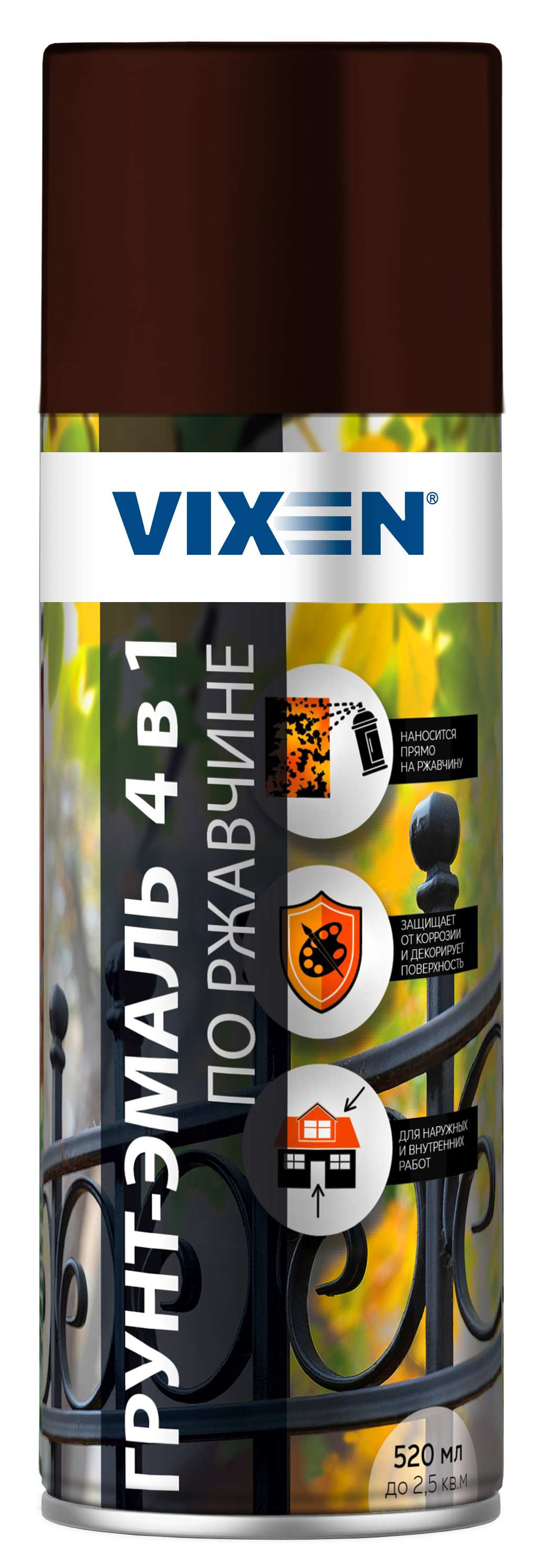 Грунт-эмаль по ржавчине VIXEN 4 в1 шоколадно-коричневый RAL 8017 520мл