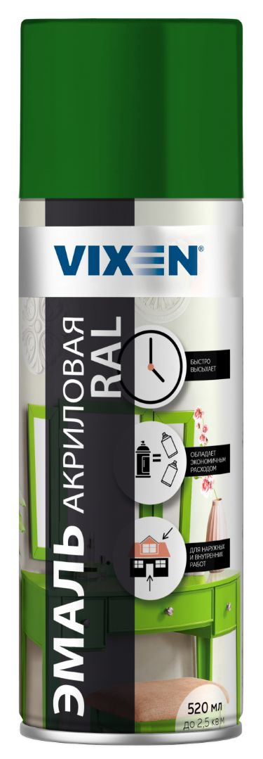 Эмаль аэрозольная VIXEN акриловая RAL 6002 "лиственно-зеленый" 520мл, VX-16002