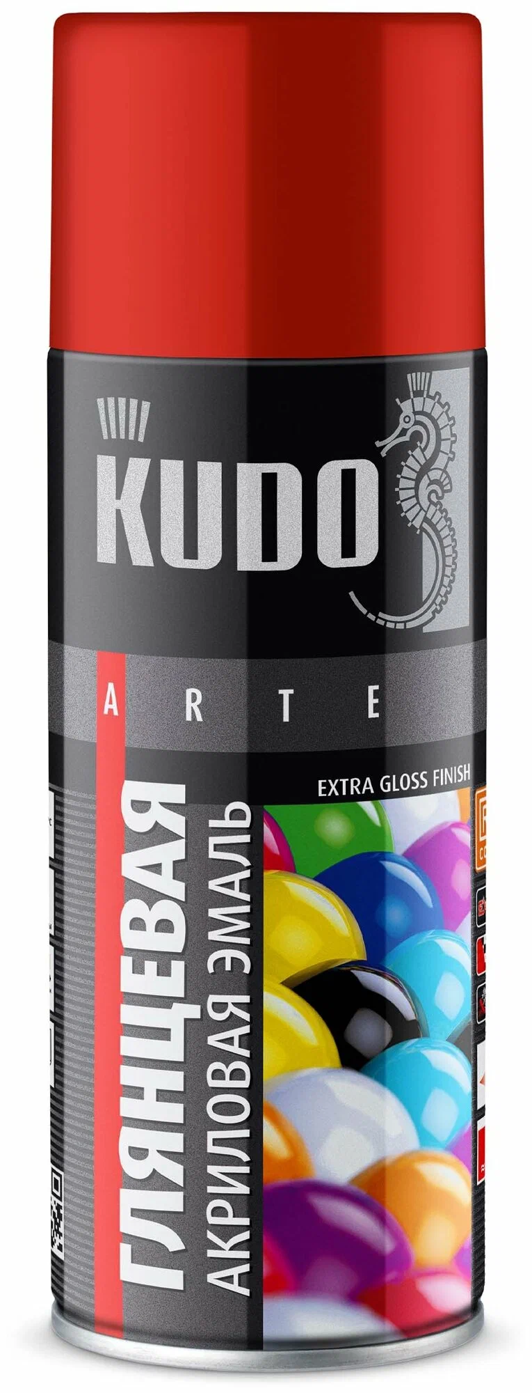 Эмаль KUDO акриловая RAL3020 красная высокоглянцевая аэрозольная универсальная 520мл