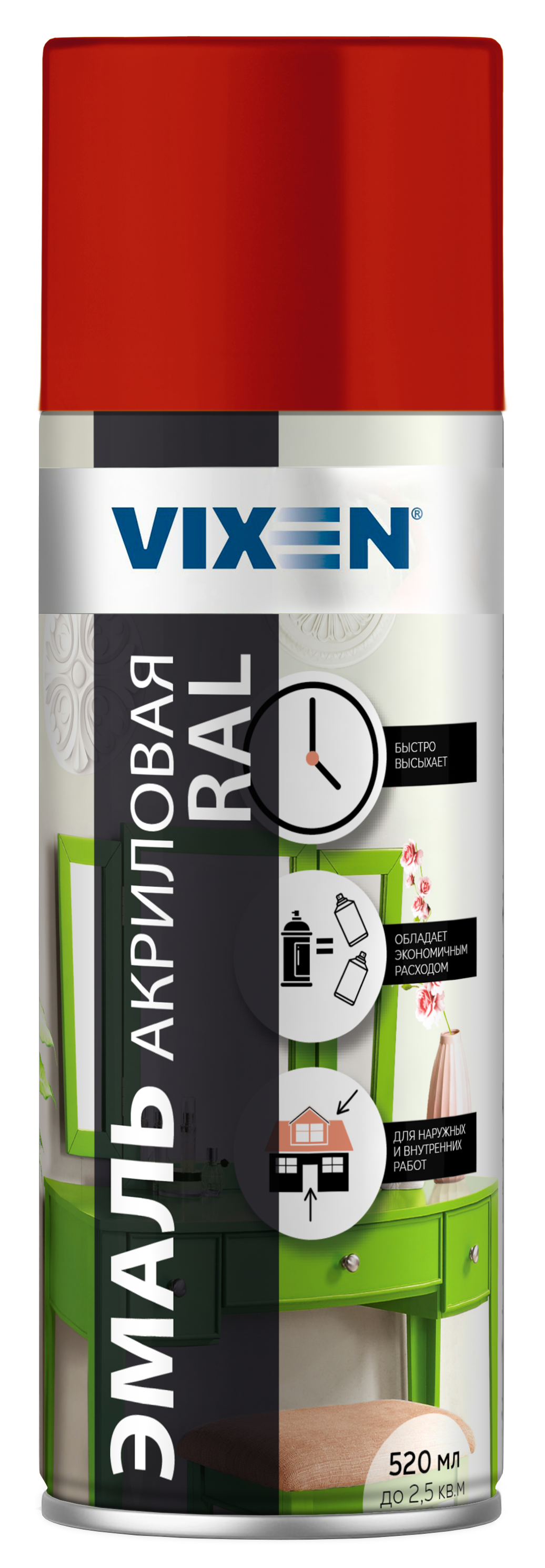 Эмаль аэрозольная VIXEN акриловая RAL 3003 "рубиново-красный" 520мл, VX-13003