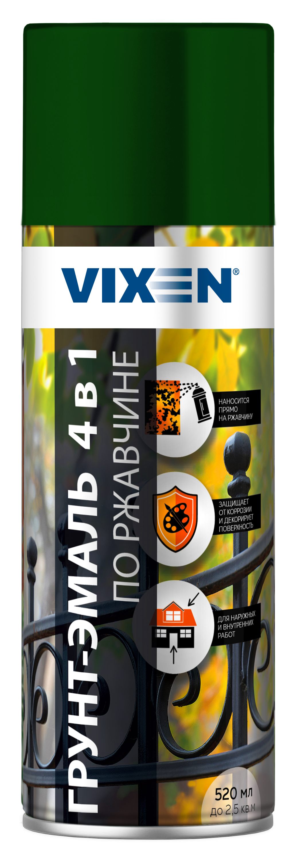 Грунт-эмаль по ржавчине VIXEN 4 в1 зеленый мох RAL 6005 520мл