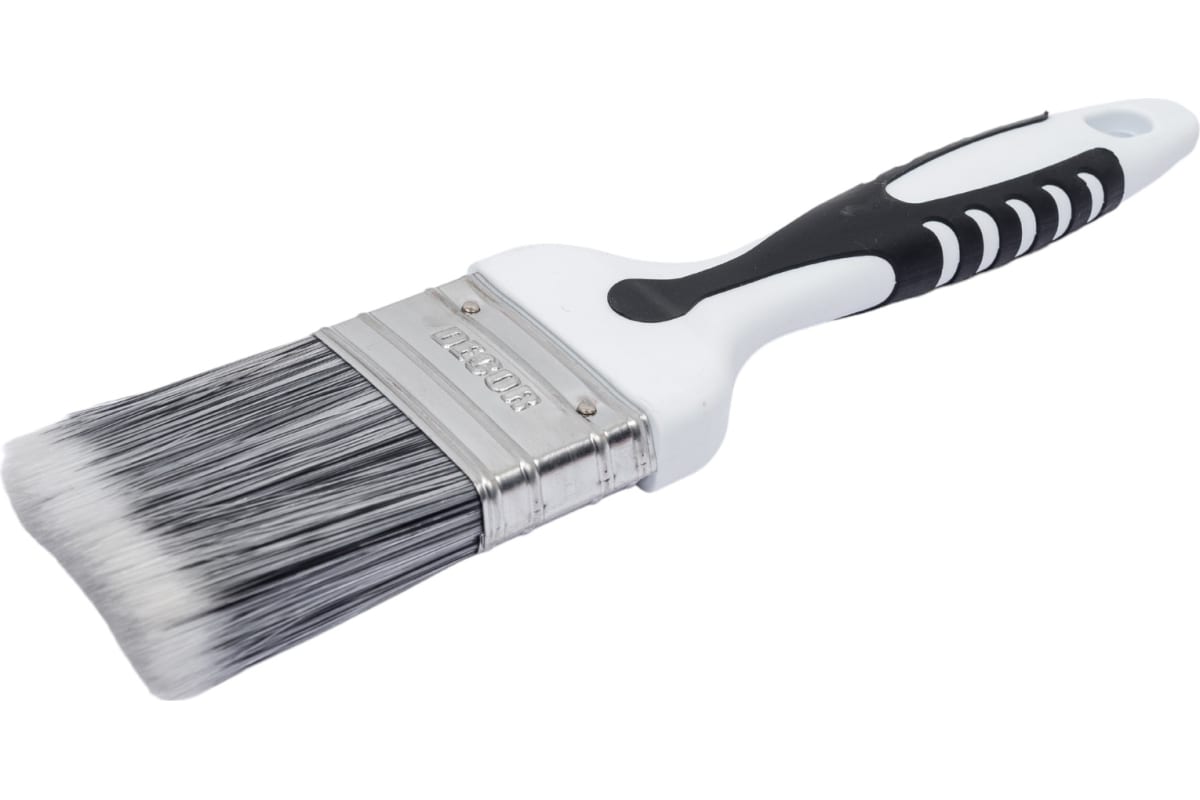 Кисть плоская Black White PREMIUM 50х15 мм серебристая щетина, 2К ручка