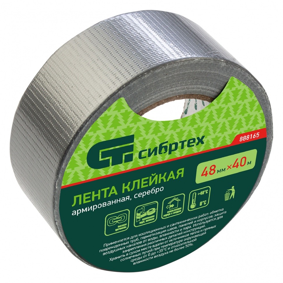 Лента клейкая армированная 48ммх40м серебро Сибртех