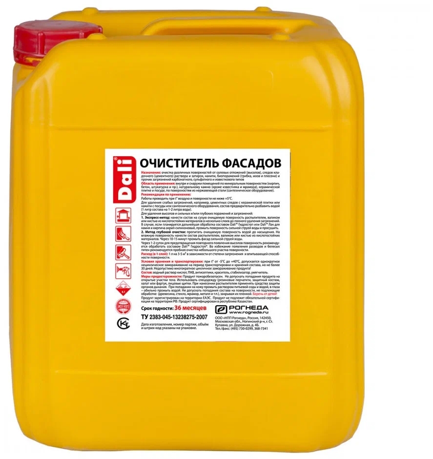 1. Экспресс-метод: нанести состав на сухую очищаемую поверхность распылителем, валиком или кистью из кислотостойких материалов в несколько слоев до полного удаления загрязнений; в случае, если планируется дальнейшая обработка составом Dali™ Гидростоп или Dali™ Лак для камня и кирпича акрил-силиконовый, промыть поверхность сильной струей воды и просушить.