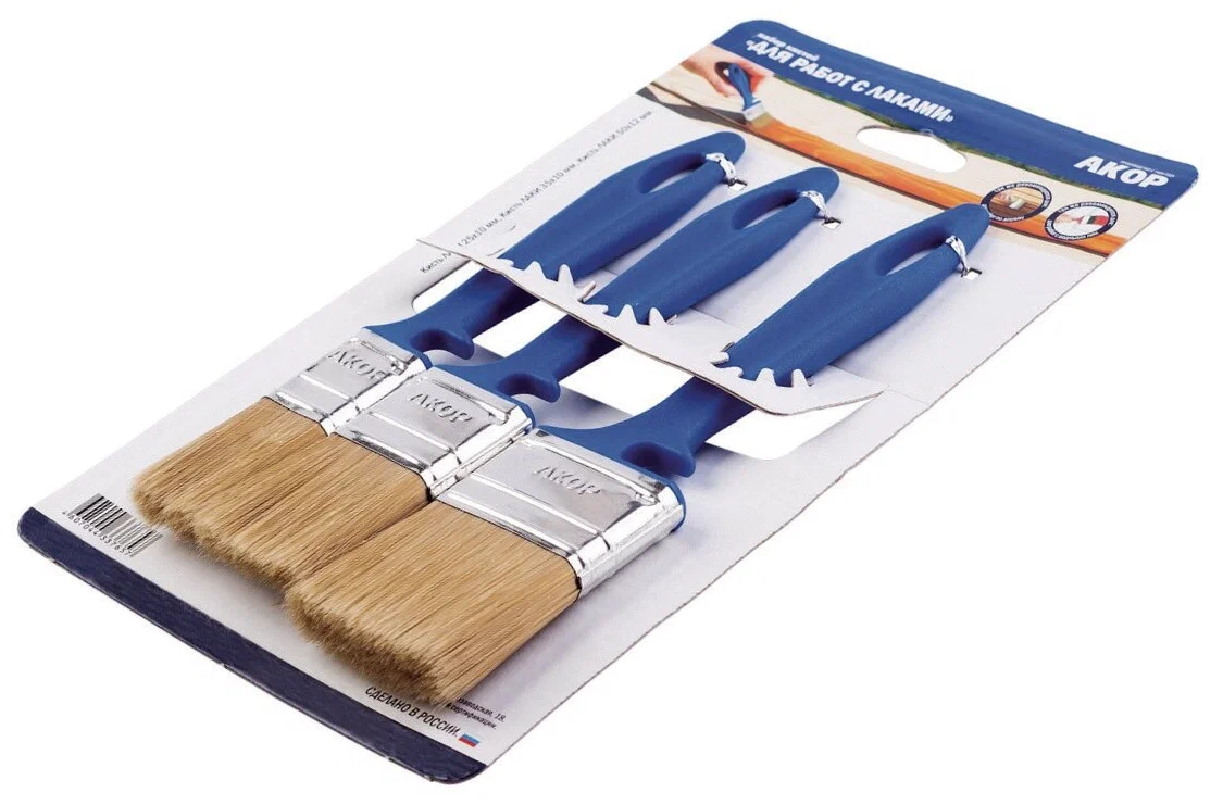 Набор кистей плоских "Лаки" 25х10мм 35х10мм 50х12мм искусств щетина Акор