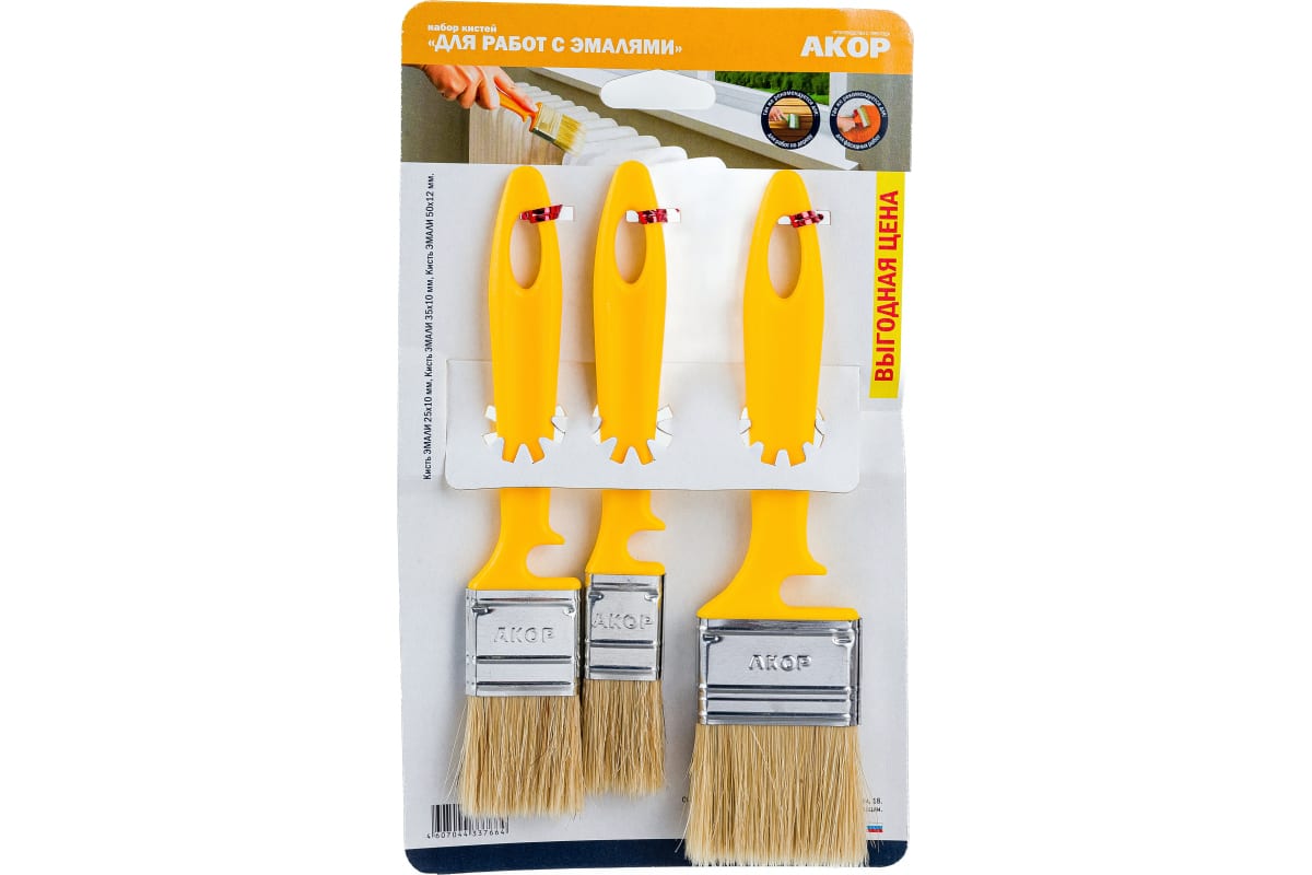 Набор кистей плоских "Эмали" набор 25х10мм 35х10мм 50х12мм натур щетина Акор